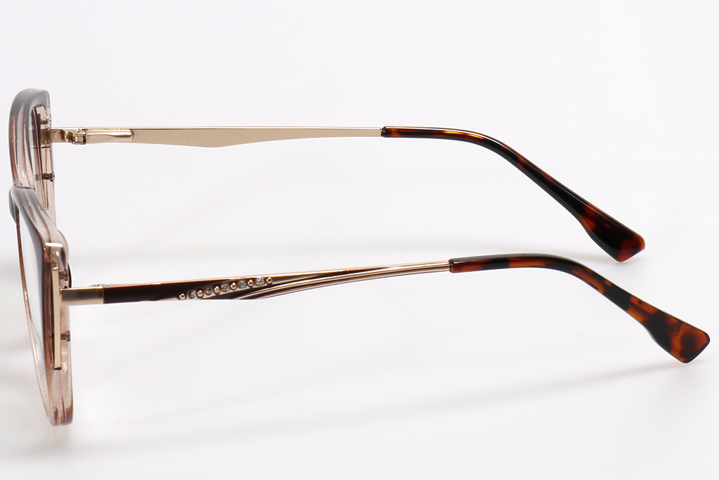 -Комбинация из пластикового ободка и металлического заушника, где присутствуют модели с цветовым переходом, а ещё варианты из прозрачного цветного пластика. На заушниках некоторых моделей имеются геометрические и орнаментальные декоративные элементы.
