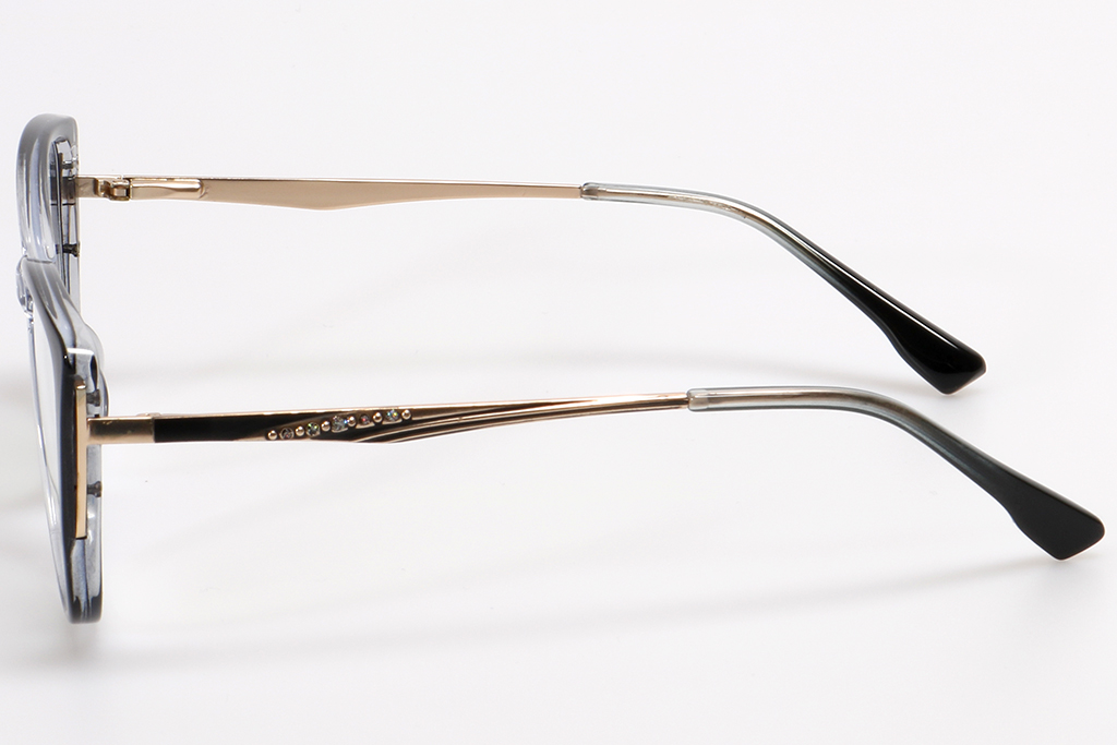 -Комбинация из пластикового ободка и металлического заушника, где присутствуют модели с цветовым переходом, а ещё варианты из прозрачного цветного пластика. На заушниках некоторых моделей имеются геометрические и орнаментальные декоративные элементы.