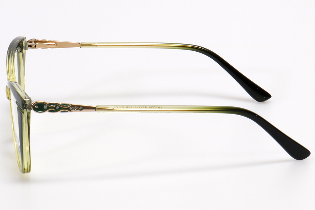 -Комбинация из пластикового ободка и металлического заушника, где присутствуют модели с цветовым переходом, а ещё варианты из прозрачного цветного пластика. На заушниках некоторых моделей имеются геометрические и орнаментальные декоративные элементы.