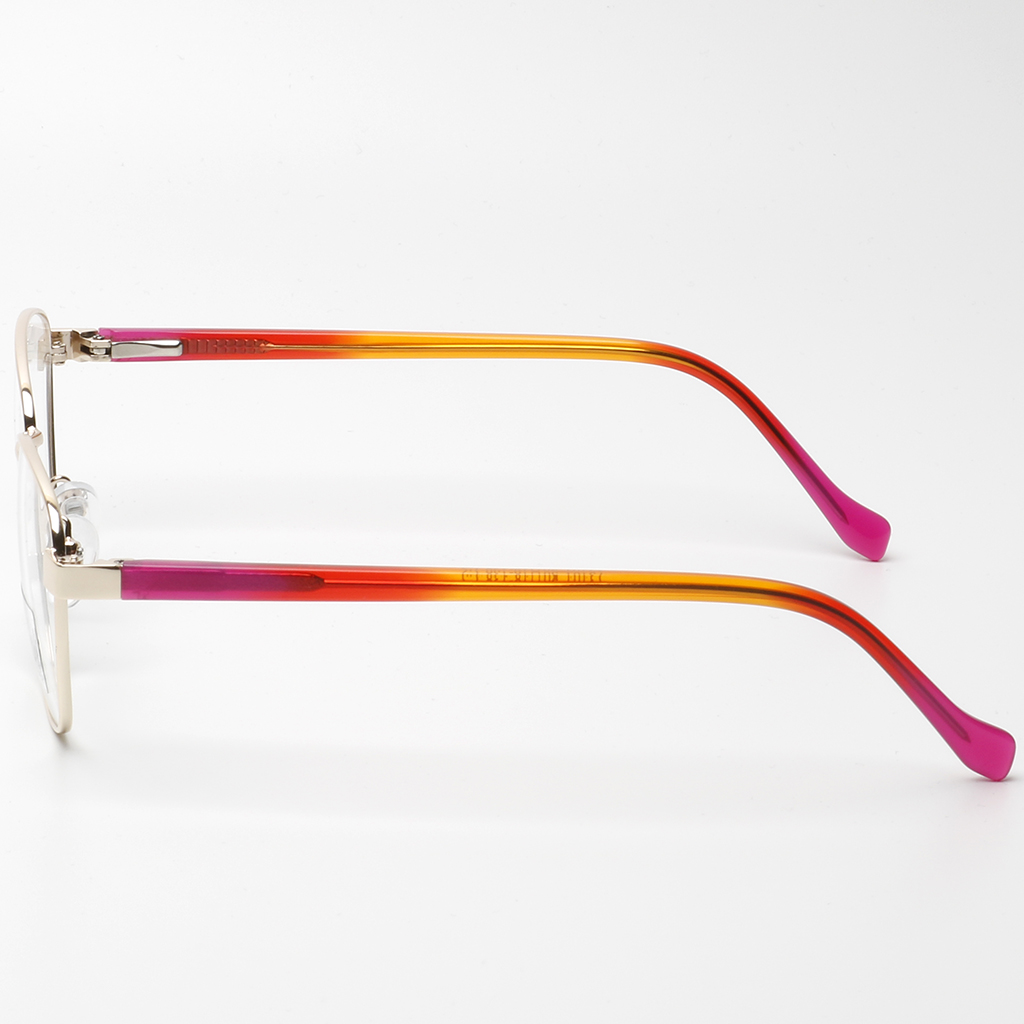 - Комбинация из пластикового ободка и металлического заушника, где присутствуют модели с цветовым переходом, а ещё варианты из прозрачного цветного пластика. На заушниках некоторых моделей имеются геометрические и орнаментальные декоративные элементы.