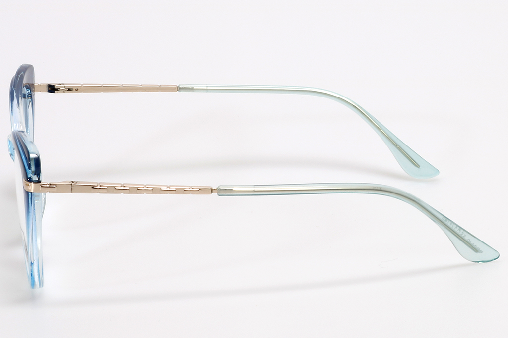 -Комбинация из пластикового ободка и металлического заушника, где присутствуют модели с цветовым переходом, а ещё варианты из прозрачного цветного пластика. На заушниках некоторых моделей имеются геометрические и орнаментальные декоративные элементы.